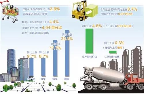 2月份,CPI同比上漲2.9%,漲幅比上個(gè)月擴(kuò)大1.4個(gè)百分點(diǎn),自2017年2月份以來(lái)首次進(jìn)入“2時(shí)代”,創(chuàng)下了自2013年12月份以來(lái)的新高。