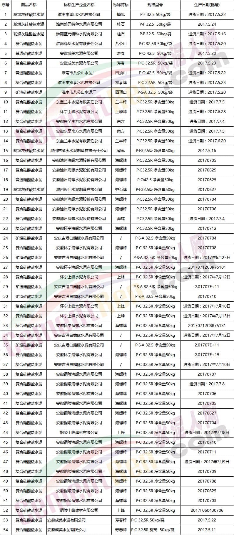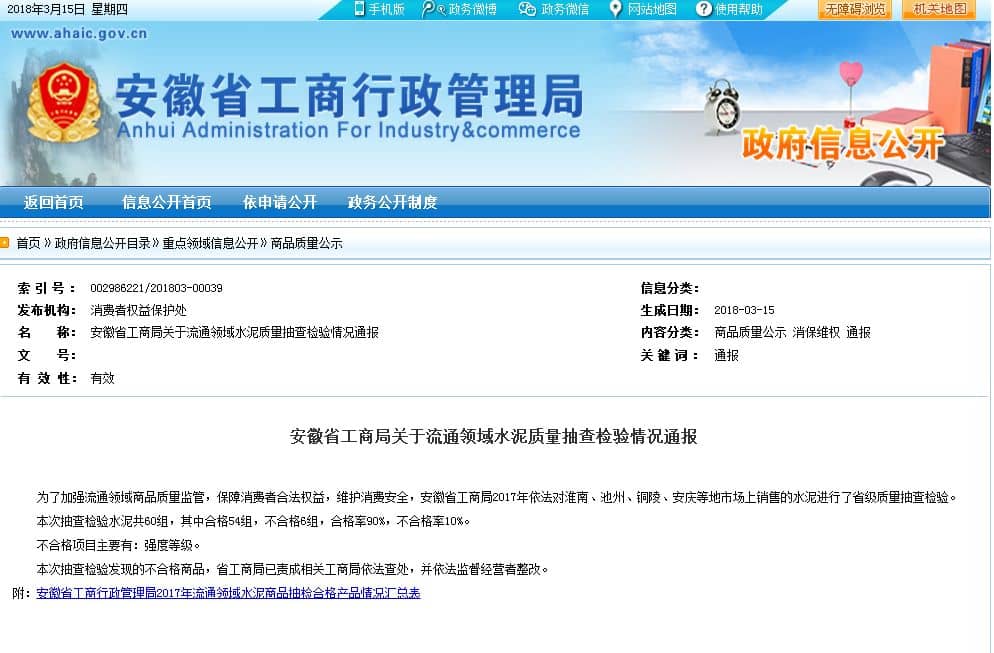 【水泥人網(wǎng)】3月15日,安徽省工商局官網(wǎng)通報(bào)流通領(lǐng)域水泥質(zhì)量抽查檢驗(yàn)情況。通報(bào)稱,為了加強(qiáng)流通領(lǐng)域商品質(zhì)量監(jiān)管,保障消費(fèi)者合法權(quán)益,維護(hù)消費(fèi)安全,安徽省工商局2017年依法對(duì)淮南、池州、銅陵、安慶等地市場(chǎng)上銷售的水泥進(jìn)行了省級(jí)質(zhì)量抽查檢驗(yàn)。