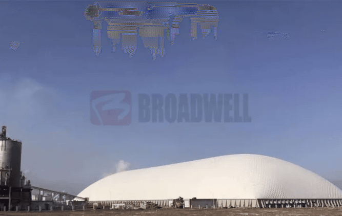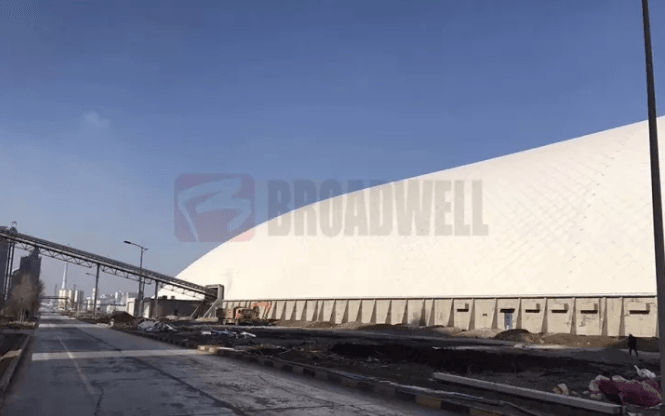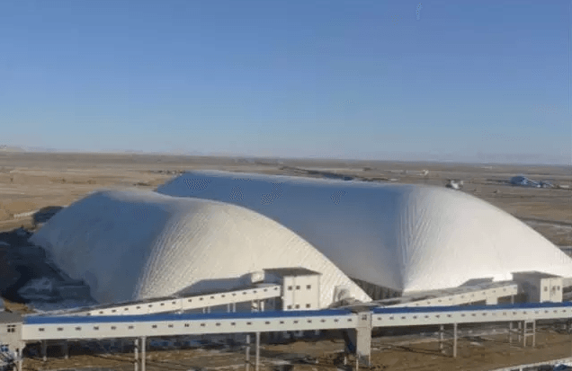 (天山股份阜康水泥全封閉式氣膜原料棚外景)