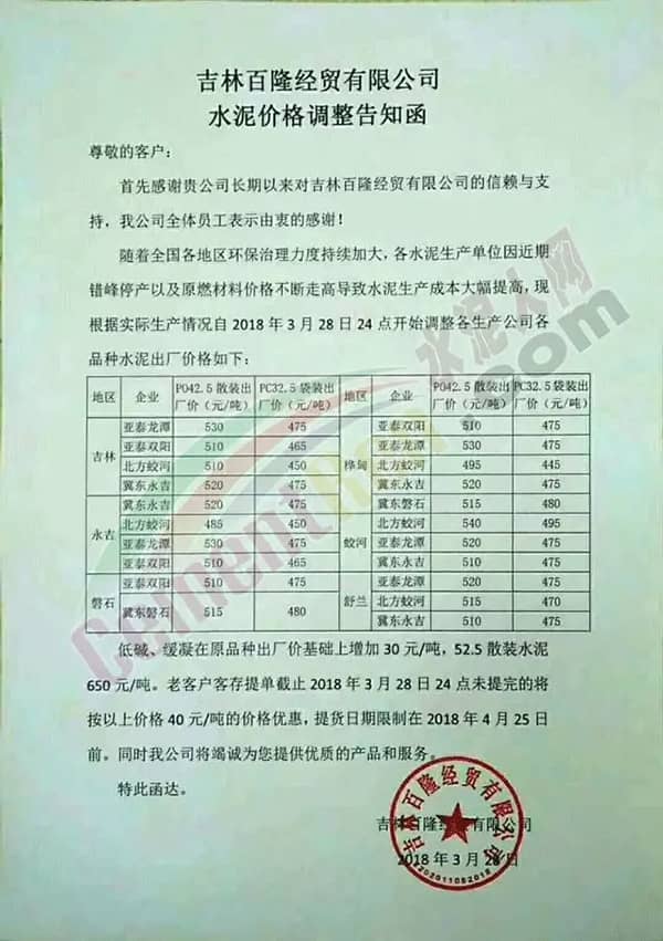 【水泥人網(wǎng)】據(jù)水泥人網(wǎng)通訊員消息,隨著下游基建工地陸續(xù)開工,各區(qū)域水泥市場一片繁忙景象,東北遼、吉、黑、蒙區(qū)域水泥企業(yè)也將陸續(xù)結(jié)束采暖季錯峰生產(chǎn)開窯投產(chǎn)。因相對庫位較低,同時受周邊區(qū)域水泥價格上調(diào)影響,東北區(qū)域近期出現(xiàn)水泥價格大幅上調(diào)現(xiàn)象。