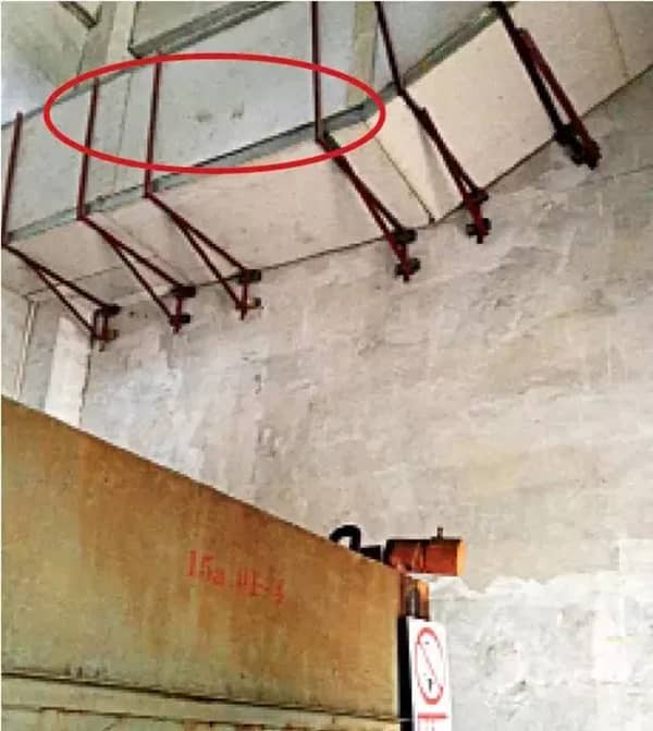 2、水泥廠預(yù)熱器系統(tǒng)下料管清堵孔處用跳板搭設(shè)簡易平臺(tái),無防墜落措施,無逃生通道。作業(yè)過程容易出現(xiàn)人員高處墜落傷害;如果出現(xiàn)熱物料異常噴出,作業(yè)人員無法逃離,還會(huì)造成熱物料的高溫灼燙傷害。