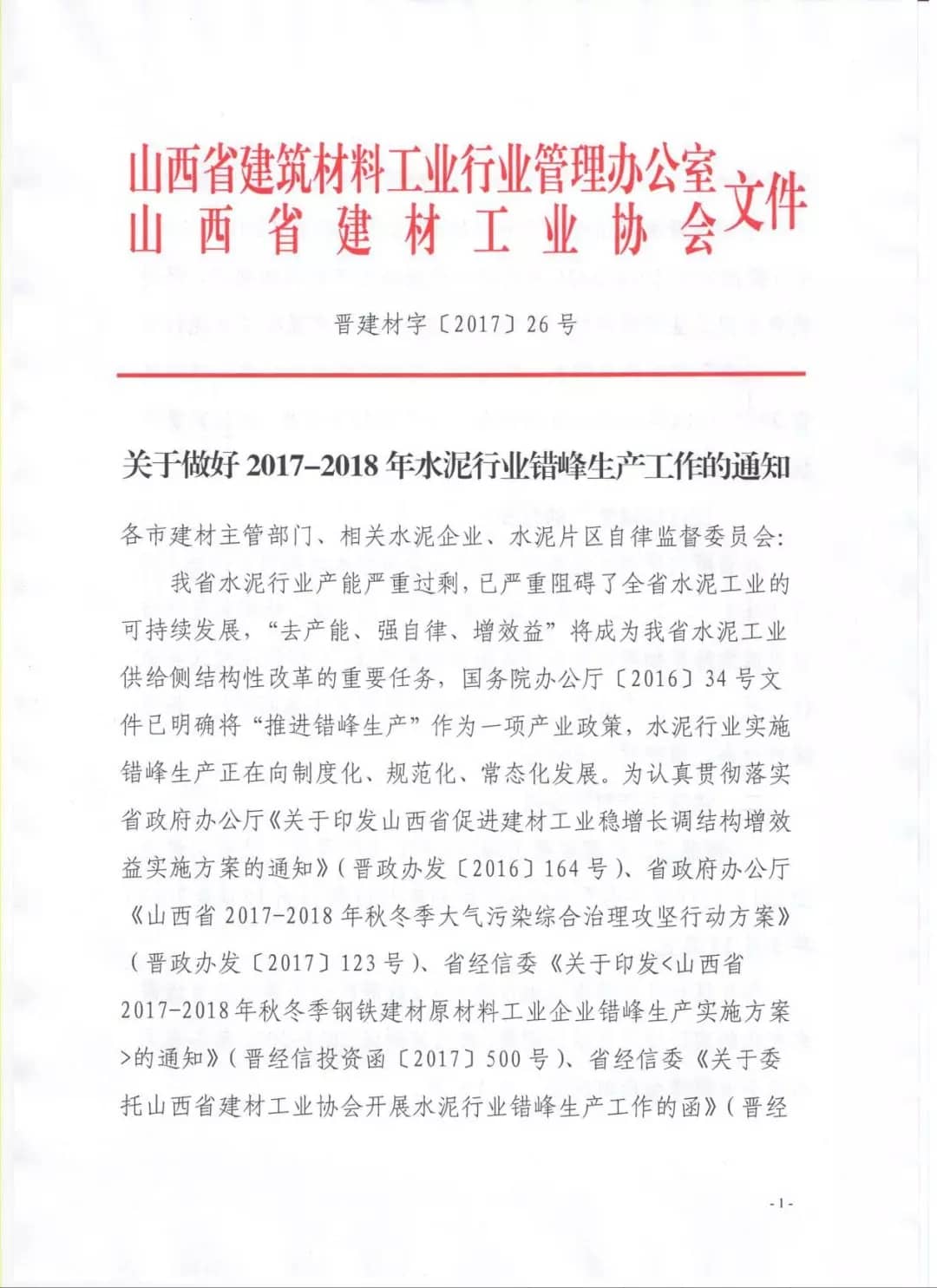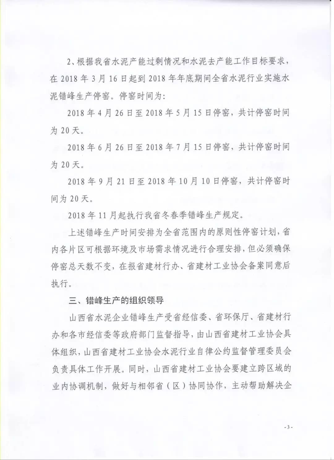 【水泥人網(wǎng)】據(jù)水泥人網(wǎng)了解,山西省根據(jù)產(chǎn)能過剩實際情況和水泥去產(chǎn)能工作目標(biāo)的要求,在2018年3月16日起到2018年年底期間全省水泥行業(yè)實施錯峰生產(chǎn)停窯,停窯時間為: