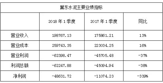 2018年一季度,雖然冀東水泥核心區(qū)域水泥市場秩序持續(xù)改善,水泥及熟料銷售價(jià)格同比上漲20%左右,毛利率和營業(yè)收入同比增加,但是因受錯(cuò)峰生產(chǎn)及環(huán)保限產(chǎn)政策、核心區(qū)域水泥市場需求下滑等因素的影響,導(dǎo)致冀東水泥水泥產(chǎn)量同比降低約17%,停工費(fèi)用增加,歸屬于上市公司股東的凈利潤虧損同比增加。