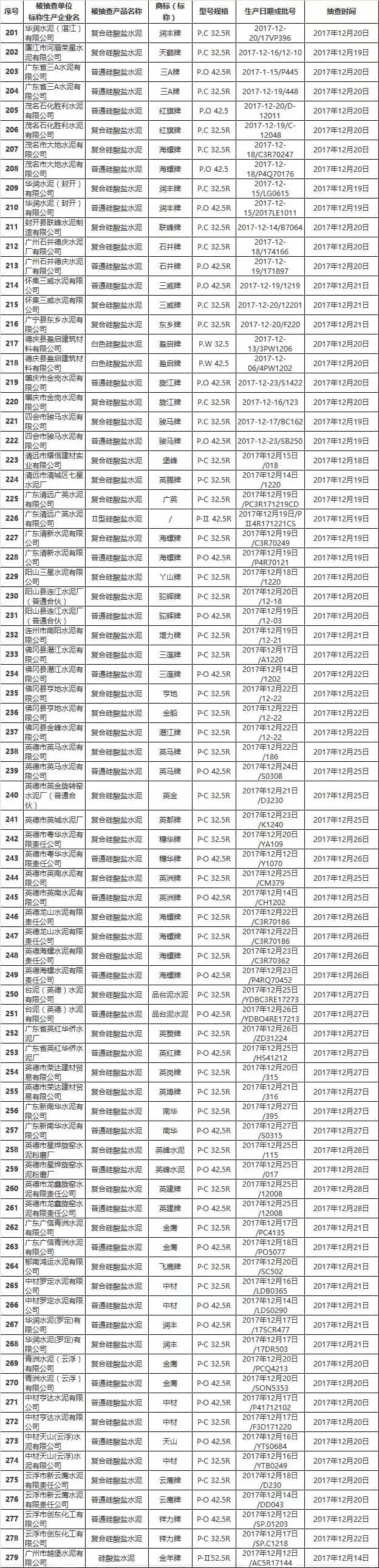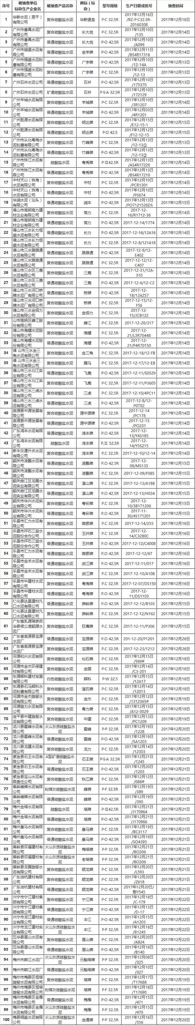 2017 年廣東省水泥產(chǎn)品質(zhì)量執(zhí)法聯(lián)動(dòng)