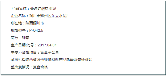 52批次整改合格或整改復查合格,其中水泥產(chǎn)品一例,整改復查情況如下:
