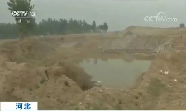 央視記者 王豐:順著村民手指的方向,我們又來到了一個這個砂石廠在附近采挖最大的一個深坑,我們到這個深坑看到的景象,基本上這個深坑的面積是相當之大,而且正在有推土機將一些垃圾向這些深坑里面進行填埋。