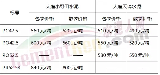 大連小野田水泥和大連天瑞水泥執(zhí)行價格來看,同標號水泥差價在40-70元/噸。