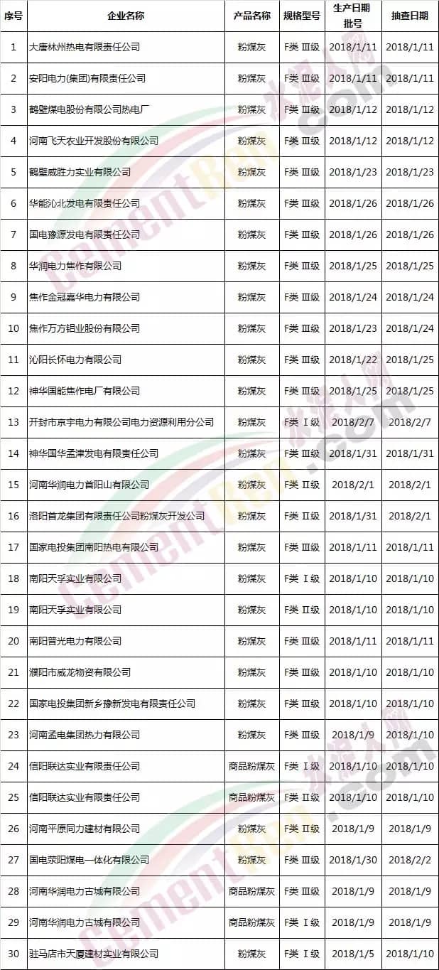 【水泥人網(wǎng)】日前,河南省質(zhì)量技術(shù)監(jiān)督局官網(wǎng)通報2018年第1批大氣污染防治粉煤灰產(chǎn)品質(zhì)量河南省專項監(jiān)督抽查情況,其中有2批次產(chǎn)品不符合標準要求。
