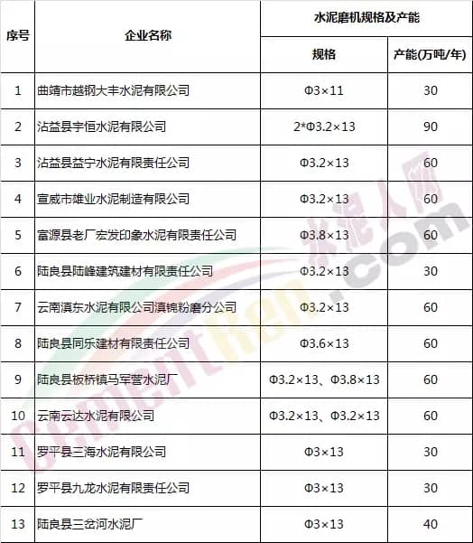 云南省曲靖市水泥粉磨站產(chǎn)能