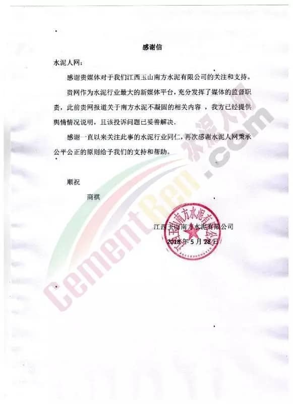 感謝貴單位編輯部對(duì)我司工作的監(jiān)督與指導(dǎo)。貴單位作為水泥行業(yè)專業(yè)的權(quán)威機(jī)構(gòu),對(duì)水泥有關(guān)各方具有不可比擬的影響力與說(shuō)服力?,F(xiàn)就網(wǎng)上出現(xiàn)我司輿情的情況作如下說(shuō)明,希望獲得貴單位的理解和支持。