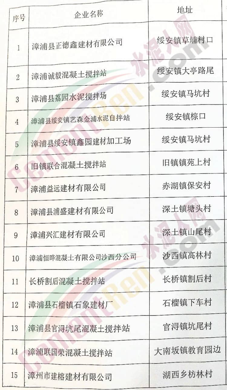 15家無資質(zhì)混凝土攪拌站具體名單