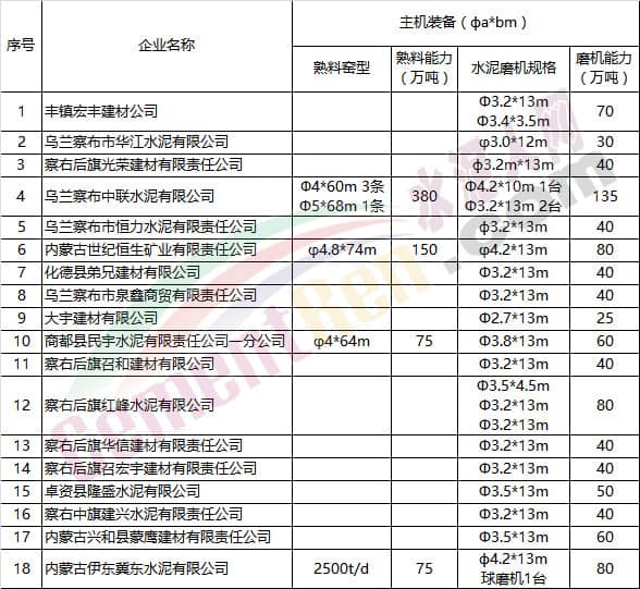 此前,內(nèi)蒙古自治區(qū)政府公布的《內(nèi)蒙古自治區(qū)水泥行業(yè)基本情況表》顯示,烏蘭察布市共有18家水泥企業(yè),其中熟料生產(chǎn)線七條,熟料產(chǎn)能合計(jì)680萬(wàn)噸。