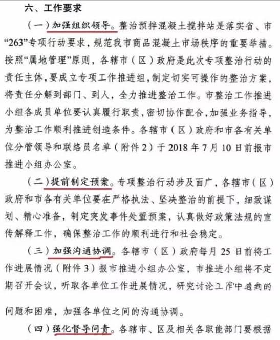 按照“全面排查、依法依規(guī)、限期到位”要求,從7月1日起,根據(jù)“屬地管理、政府主導(dǎo)、部門聯(lián)動(dòng)”的原則,確保在今年12月底前,規(guī)范全市預(yù)拌混凝土攪拌站的生產(chǎn)經(jīng)營(yíng)行為,取締一批不合法、不合規(guī)的預(yù)拌混凝土攪拌站。