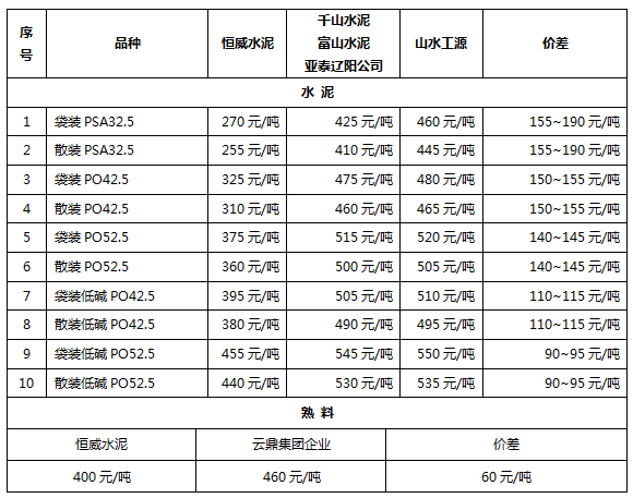 對(duì)比這家企業(yè)四月初發(fā)布的價(jià)格通知,部分標(biāo)號(hào)水泥產(chǎn)品價(jià)格有小幅上調(diào)。相關(guān)分析人士稱,近期,遼中地區(qū)價(jià)格較平穩(wěn),波動(dòng)不大,恒威水泥上調(diào)水泥價(jià)格或?yàn)槠胶夤┬琛?/p>