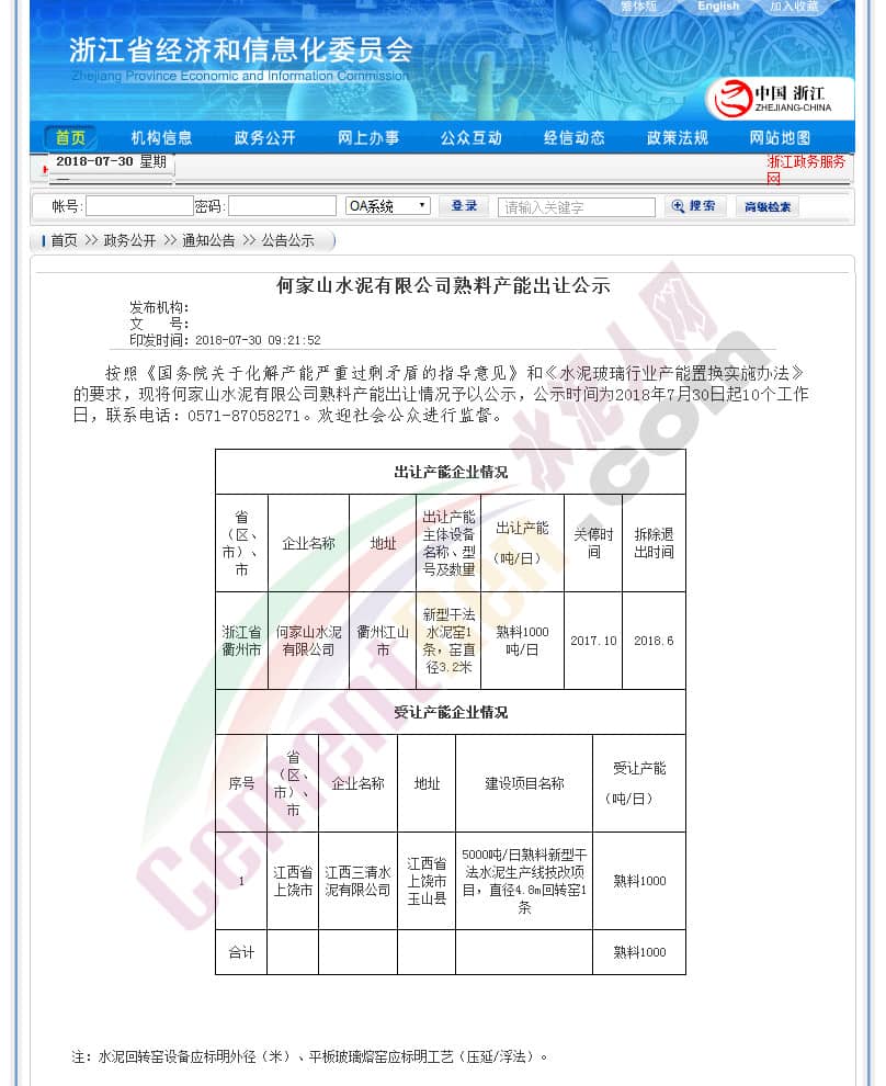 據(jù)水泥人網(wǎng)了解,1000t/d熟料產(chǎn)能出讓企業(yè)浙江衢州市何家山水泥有限公司共有兩條熟料生產(chǎn)線,規(guī)模分別為2500噸/日和1000噸/日。其中熟料1000t/d生產(chǎn)線在幾年前就已停產(chǎn),今年6月份正式拆除退出。