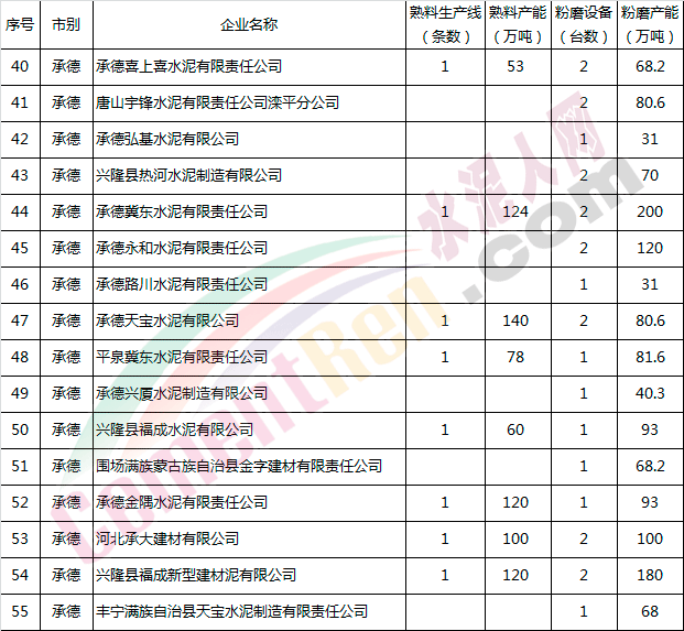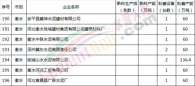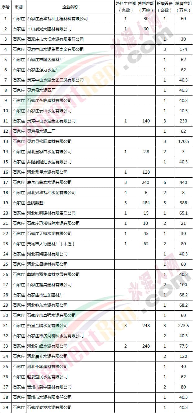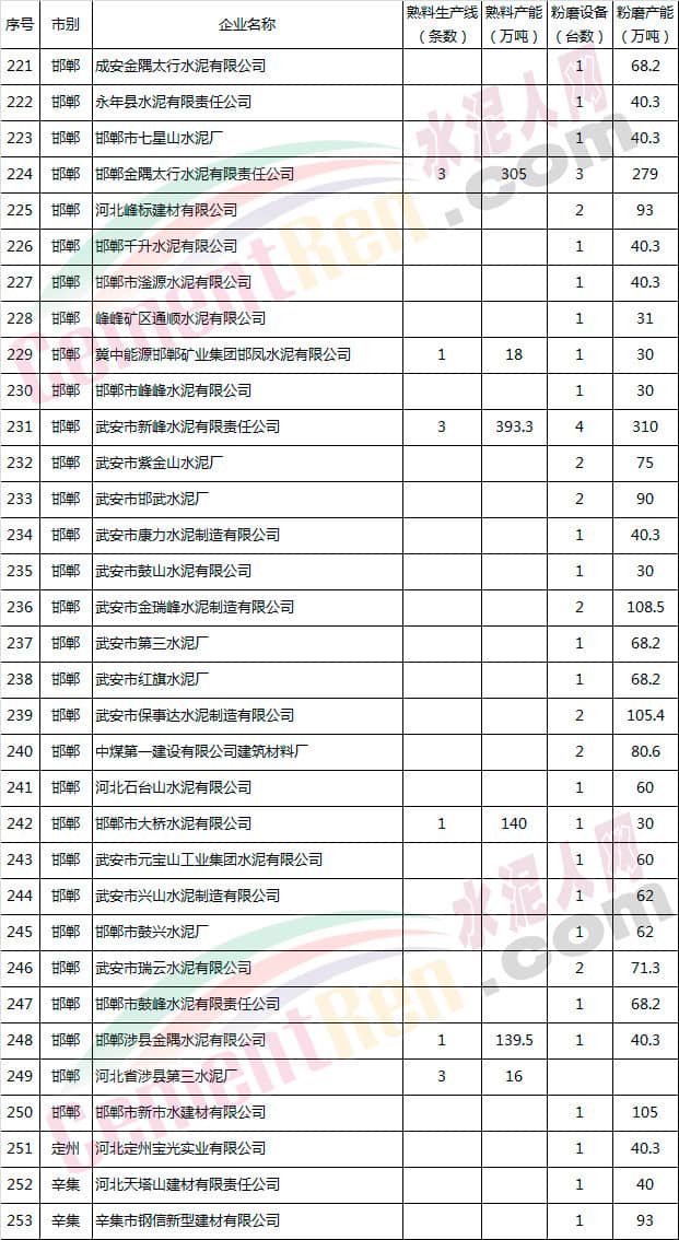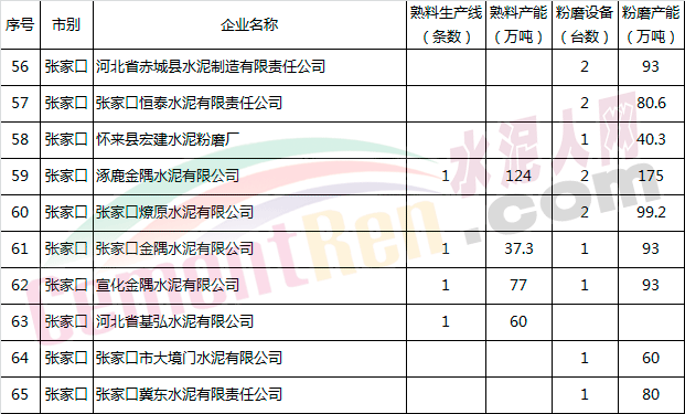 河北省水泥企業(yè)產(chǎn)能情況表