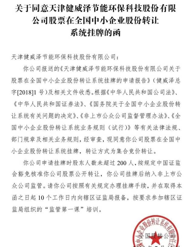 【水泥人網】據全國中小企業(yè)股份轉讓系統(tǒng)相關消息顯示,國內余電發(fā)熱工程領域的技術服務及改造領域的引領者,天津健威澤節(jié)能環(huán)??萍脊煞萦邢薰?以下簡稱“天津健威澤”)已于2018年7月31日起成功在新三板掛牌,這是天津健威澤的里程碑。在今后的發(fā)展過程中,天津健威澤將會加大在技術研發(fā),用戶服務、社會責任方面的投入,切實回報用戶、回報各大股東,實現(xiàn)企業(yè)利益最大化。