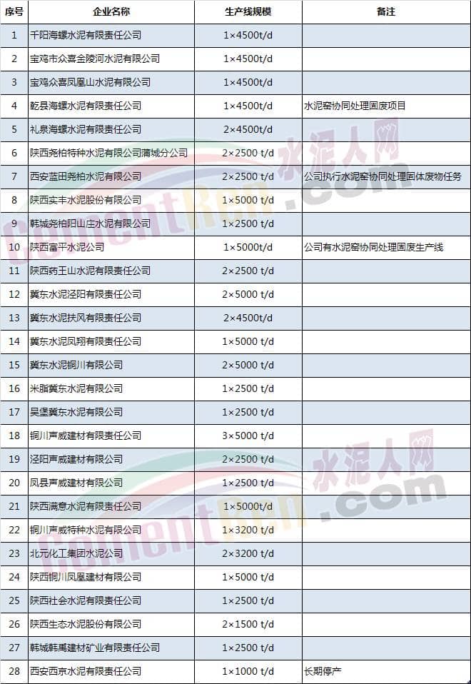 熟料生產(chǎn)線名單(部分)