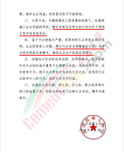 此次倡議包括要確?;炷临|(zhì)量,穩(wěn)定市場價格,推行現(xiàn)金交易,杜絕低價競爭等內(nèi)容,希望所有會員團結(jié)一致,共渡難關(guān)。