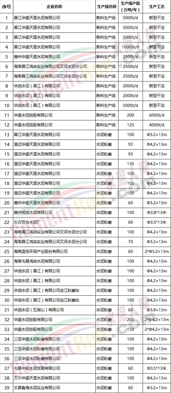 綜合來(lái)看, 海南島內(nèi)主要生產(chǎn)企業(yè)為華盛天涯、華潤(rùn)水泥及昌江鴻啟等。
