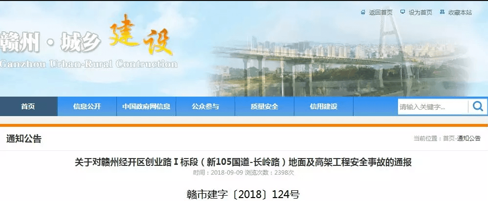 9月9日,贛州市城鄉(xiāng)建設(shè)局對事故進(jìn)行了通報。通報全文如下: