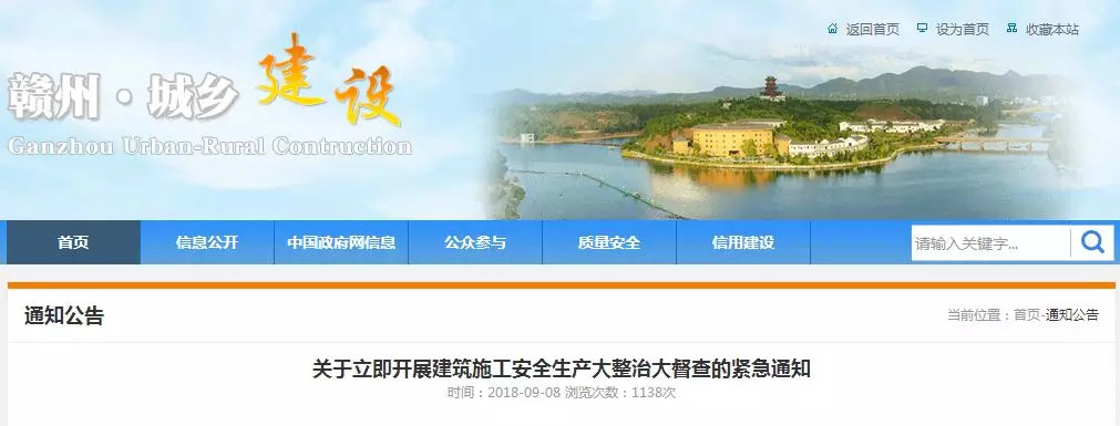 在此通報之前,9月8日,贛州市安委會建筑施工安全專業(yè)委員會發(fā)布緊急通知,自通知下發(fā)之日起至9月14日,在全市范圍內(nèi)立即開展建筑施工安全生產(chǎn)大整治大督查。