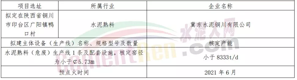 日前,陜西省工信廳發(fā)布《關(guān)于對冀東水泥銅川有限公司產(chǎn)能置換的公示》文件。公示文件稱:按照《國務(wù)院關(guān)于化解產(chǎn)能嚴(yán)重過剩矛盾的指導(dǎo)意見》(國發(fā)〔2013〕41號)和《工信部水泥玻璃行業(yè)產(chǎn)能置換實施辦法》(工信部原〔2017〕337號)要求,將冀東水泥銅川有限公司產(chǎn)能置換方案進(jìn)行公示,對產(chǎn)能置換方案如有異議,可致電陜西省工信廳反映。公示期自2018年9月7日到2018年9月14日,聯(lián)系人:原材料工業(yè)處陸瑩 。聯(lián)系電話029-63915595