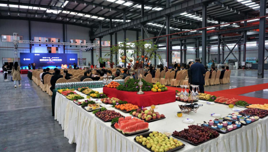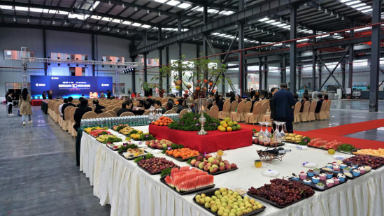 會場后休息瓜果繽紛,慶典儀式現(xiàn)場 200多人,座無虛席