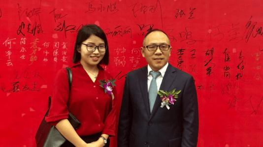 水泥人網(wǎng)市場總監(jiān)張?zhí)m與何榮董事長合影