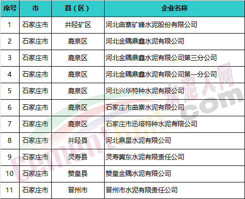 石家莊市重點(diǎn)排污水泥企業(yè)名錄