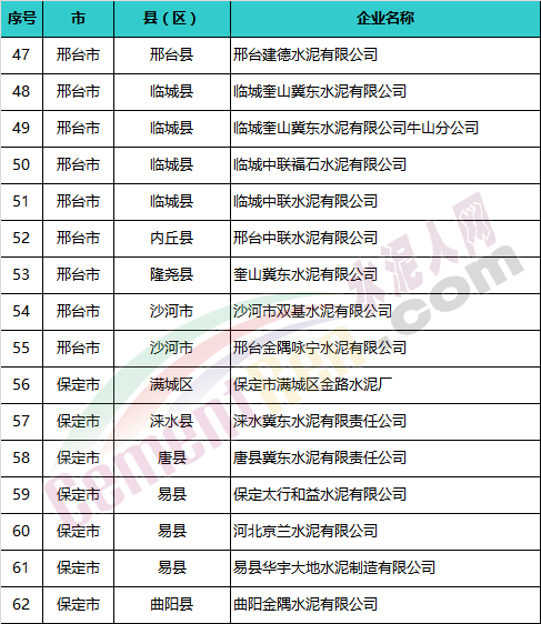 邢臺(tái)市、保定市重點(diǎn)排污水泥企業(yè)名錄