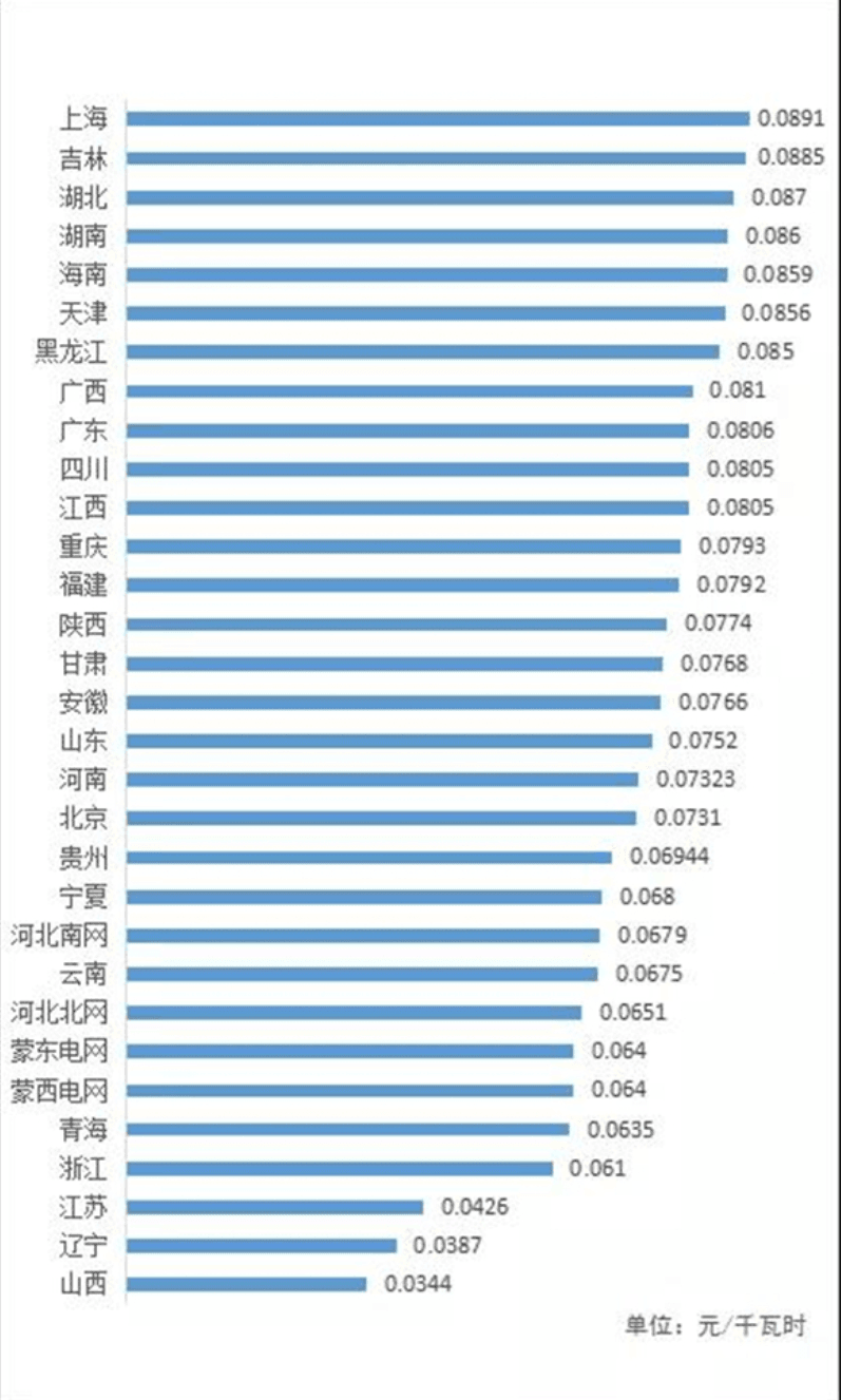 我國銷售電價按用電性質(zhì)分為4大類,分別是居民、農(nóng)業(yè)、大工業(yè)、一般工商業(yè)。一般工商業(yè)又分兩部分,一部分是商業(yè)用電,另一部分是小型工業(yè)用電,這些企業(yè)變壓器容量在315千伏安以下。商業(yè)企業(yè)和小型工業(yè)企業(yè)用電價格執(zhí)行一般工商業(yè)電價。從各類電價水平來看,全國平均銷售電價水平是每千瓦時0.65元,其中居民電價每千瓦時0.55元,農(nóng)業(yè)電價每千瓦時0.48元,大工業(yè)電價每千瓦時0.64元,一般工商業(yè)電價每千瓦時0.80元,一般工商業(yè)電價是這四類里面最高的。