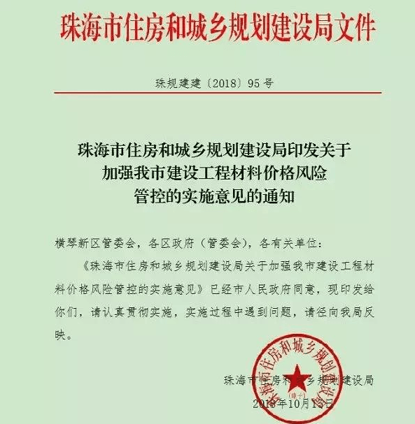 珠海市住房和城鄉(xiāng)規(guī)劃建設局關于加強我市建設工程材料價格風險管控的實施意見