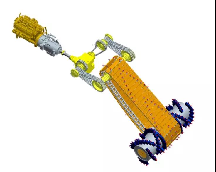同時由于采用機械式傳動,整個系統(tǒng)更加簡單,消耗更加低,維修更加方便。相比較在作業(yè)條件艱難的礦山使用,尤其是抗壓強度超過80Mpa的巖石工作, 其比液力傳動的采礦機適用性更強;切割滾筒置于端部,更容易域的工作;設(shè)備為開溝機發(fā)展而來,具有良好的爬坡能力,也能夠更好的應(yīng)用于礦山基建和采準(zhǔn)工作。