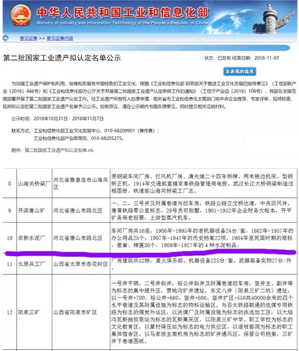 近日,工信部為加強(qiáng)工業(yè)遺產(chǎn)保護(hù)和利用,培育和發(fā)展有中國(guó)特色的工業(yè)文化,在全國(guó)范圍部署開(kāi)展了第二批國(guó)家工業(yè)遺產(chǎn)認(rèn)定工作。水泥行業(yè),啟新水泥廠成功入選了第二批國(guó)家工業(yè)遺產(chǎn)擬認(rèn)定名單。公示時(shí)間為2018年10月31日至2018年11月7日。