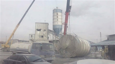昨日9時許,記者來到位于金三角當浪土牧大橋以西500米處路南的坤乾攪拌站院內,看到拆除工作正在進行。在執(zhí)法現(xiàn)場,有4個藍色的巨型大罐橫躺在院內。據現(xiàn)場的城管執(zhí)法人員介紹,這4個大罐是前一天拆下來的,這處攪拌站占地面積接近5000平方米,為了避免拆除工作產生的揚塵造成環(huán)境污染,還調了多臺灑水車對現(xiàn)場進行降塵。
