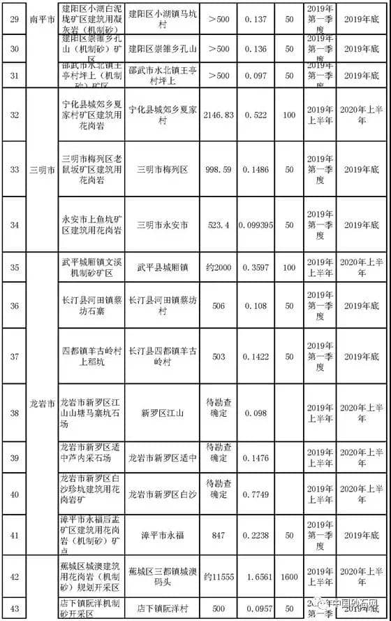 特別是要求:福建全省要在2020年底前達到年產(chǎn)5000萬立方米機制砂的生產(chǎn)能力才能滿足建設(shè)工程用砂需求。今天,相應礦區(qū)名單出爐,一共有52家機制砂礦區(qū)。