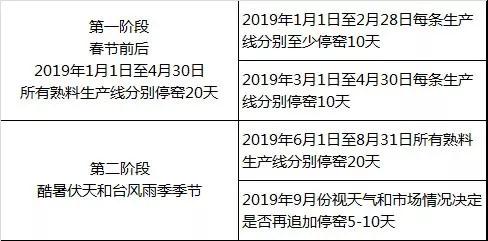 錯峰生產時間安排: 全年計劃錯峰生產停窯40天/窯,分兩階段進行。