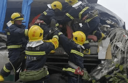 事故發(fā)生后,宜賓江安縣消防救援力量出動14名消防員到場施救。事故現(xiàn)場一輛渝A牌照客車撞上應(yīng)急車道上的水泥罐車,客車右前方一片狼藉,撞碎的車輛零部件下有三人被死死卡住。遺憾的是,經(jīng)現(xiàn)場救護(hù)人員初步診斷三名被困者已身亡。