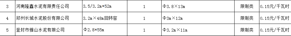 用電不加價水泥企業(yè):鄭州煤炭工業(yè)集團龍力水泥有限責(zé)任公司、天瑞集團鄭州水泥有限公司、中國長城鋁業(yè)有限公司水泥廠、登封中聯(lián)登電水泥有限公司、天瑞新登鄭州水泥有限公司、登封市嵩基水泥有限公司、登封市宏昌水泥有限公司、登電集團水泥有限公司、鄭州順寶水泥股份有限公司、鄭州永華水泥有限公司、新鄭市恒發(fā)水泥廠、河南雙龍建材有限公司。