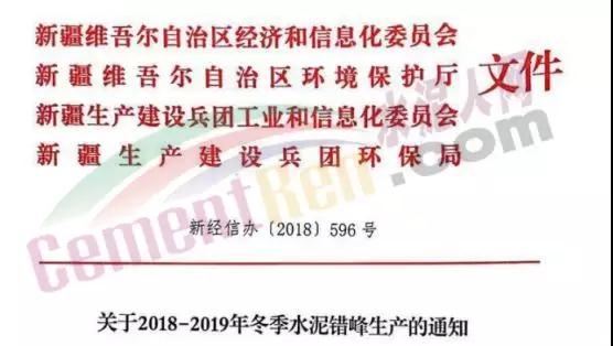 根據(jù)新疆環(huán)保廳、工信委、生產(chǎn)建設(shè)兵團環(huán)保局聯(lián)合發(fā)布的《關(guān)于2018-2019年冬季水泥錯峰生產(chǎn)的通知》相關(guān)要求,和田自2018年12月1日至2019年3月1日、2019年4月1日至2019年5月1日共計4個月;喀什、克州2018年11月1日至2019年3月1日、2019年4月1日至2019年5月1日共計5個月;阿克蘇、巴州2018年11月1日至2019年4月1日,2019年5月1日至2019年6月1日共計6個月,其它地州市2018年11月1日至2019年5月1日、2019年6月1日至2019年7月1日,共計7個月。