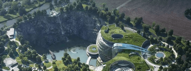 深坑酒店的建設(shè)不僅遇到了負(fù)向施工的難題,與自然和諧共生的設(shè)計理念,也讓這個廢棄深坑成為了綠色施工的典范。
