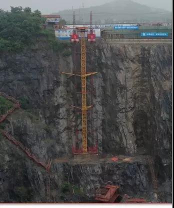 有人提出架設(shè)電梯,但在深坑絕壁上實(shí)施起來的難度非常大。因?yàn)樯羁邮莻€接近80度的向外傾斜的斜坡,難以提供固定依托,電梯無法附著在崖壁上。這時,建筑工地上隨處可見的塔吊給了大家啟發(fā),將高聳的塔身用作垂直電梯的立柱豈不兩全其美?但這其實(shí)是一個大膽而同時具有風(fēng)險的創(chuàng)意。因?yàn)樗碜鳛樗鄣钠胶庵吸c(diǎn),它承受著垂直向下的壓力,如果再充當(dāng)電梯的立柱,那么移動的電梯會給它帶來向外的拉力,如果左右受力不均,就容易導(dǎo)致高塔的傾覆。為此,項(xiàng)目團(tuán)隊(duì)不僅把80多米的塔身安放在牢固的基座上,還同時用上下四道拉桿與巖壁相連,為“無依無靠”的電梯立柱作了穩(wěn)固措施。如此,塔身上附著的四座電梯轎廂一次可搭乘32人上下往返。