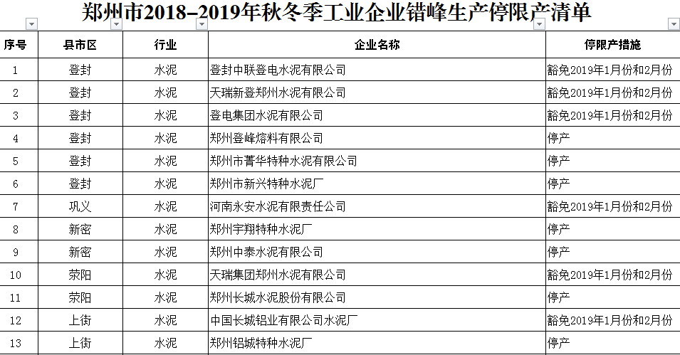 附件:鄭州市2018-2019年秋冬季工業(yè)企業(yè)錯(cuò)峰生產(chǎn)停限產(chǎn)清單