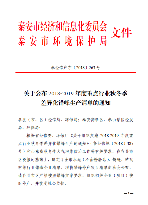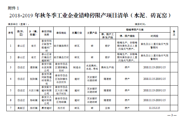 近日,泰安市經(jīng)濟(jì)和信息化委員會和泰安市環(huán)境保護(hù)局聯(lián)合發(fā)布《關(guān)于公布2018-2019年度重點(diǎn)行業(yè)秋冬季差異化錯峰生產(chǎn)清單》的通知,據(jù)悉,在各縣市區(qū)提報(bào)的基礎(chǔ)上,確定了全市水泥(不含粉磨站)、鑄造、磚瓦窯等行業(yè)錯峰企業(yè)清單。錯峰停產(chǎn)項(xiàng)目清單將向社會公布,要求各縣市區(qū)嚴(yán)格按照錯峰方案要求,組織相關(guān)企業(yè)(項(xiàng)目)按時(shí)停產(chǎn),同時(shí)接受社會監(jiān)督。