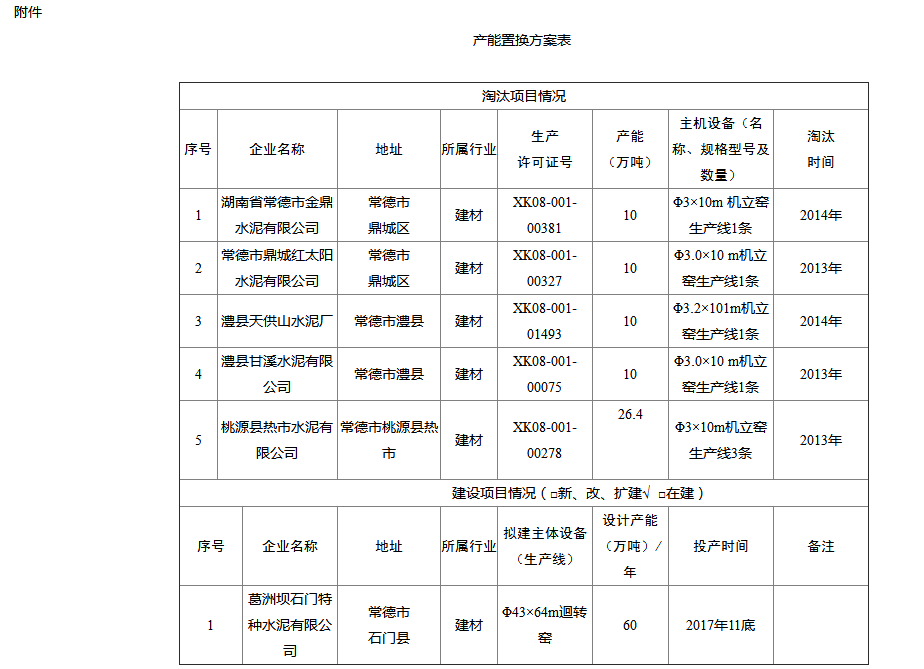 注:2014年邵陽(yáng)市制定該項(xiàng)目產(chǎn)能置換方案時(shí),國(guó)家尚未出臺(tái)具體的產(chǎn)能置換辦法,即《工業(yè)和信息化部關(guān)于做好部分產(chǎn)能嚴(yán)重過(guò)剩行業(yè)產(chǎn)能置換工作的通知》(工信部產(chǎn)業(yè)〔2014〕296號(hào))和《工業(yè)和信息化部關(guān)于印發(fā)部分產(chǎn)能嚴(yán)重過(guò)剩行業(yè)產(chǎn)能置換實(shí)施辦法的通知》(工信部產(chǎn)業(yè)〔2015〕127號(hào)),故按《國(guó)務(wù)院關(guān)于化解產(chǎn)能嚴(yán)重過(guò)剩矛盾的指導(dǎo)意見》(國(guó)發(fā)〔2013〕41號(hào))精神進(jìn)行方案制定與確認(rèn)。