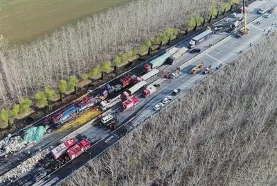 ▲ 11月12日,青銀高速高唐境內(nèi)因突發(fā)團(tuán)霧,在420公里至421公里(石家莊方向)之間,兩處發(fā)生車輛碰撞起火燃燒事故。經(jīng)初步勘查,兩處事故共涉及21輛車,造成16輛車起火燃燒。事故造成2人死亡,9人受傷。
