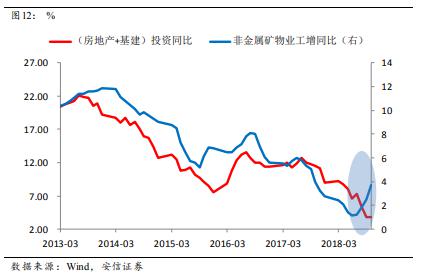 但隨后我們看到,鋼鐵價格和生產都在明顯走強,這意味著需求是較強的;而另一方面基建投資在明顯走弱,這可能意味著房地產投資可能要好于預期。一個可能的解釋是,房地產企業(yè)2018年資金緊張,但又想加大土地購置,因此房企拿地后,趕緊開工至總投資額的25%之后馬上辦理預售證后開盤銷售,盡快回款,但之后緩慢施工。一般來說,房屋總投資25%的進程都已經建至地面以上,打基礎的部分大概要消耗鋼筋水泥的一半左右,這使得水泥包括鋼鐵的消耗量大增。