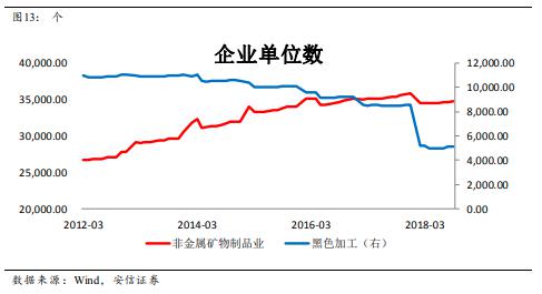 第一個解釋還需要更多的證據。關于第二個解釋,我們知道鋼鐵煤炭的去產能盛行于2016-2017,但水泥行業(yè)的動作要晚,去年才頒布了《水泥行業(yè)去產能行動計劃(2018~2020)》。特別的,從企業(yè)單位數這個指標來看,水泥行業(yè)直到2017年的單位數還在增長,而鋼鐵、有色、化工等行業(yè)的企業(yè)單位數從2015年以來都是在下降的。因此,水泥行業(yè)的供給側改革可能導致幸存者偏差的問題,使得統計數據高估。