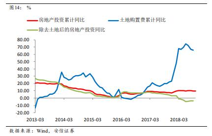 第三個解釋或許更為重要。2018年以來市場一致的認識是,房地產企業(yè)加大了土地購置,土地購置費大幅增長;另一方面,今年的房地產投資數據一直在10%左右波動,因此倒算出來的包括建安等在內的其他部分投資同比出現負增長。所以,市場一度相信剔除土地后的實際投資并不樂觀。